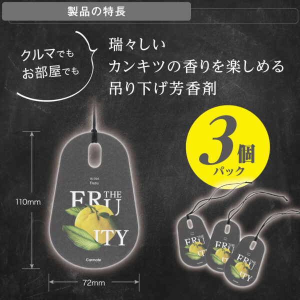 Product Name: THE FRUITY PAPER FRAGRANCE YUZUProduct Color: BlackProduct Weight: 8gProduct Size: H110 × W72 × D1 (mm)Package Weight: 38gPackage Size: H180 × W90 × D6 (mm)Carton Weight: 4300gCarton Size: H110 × W390 × D370 (mm)Quantity per Carton: 80 unitsJAN Code: 4973007316824